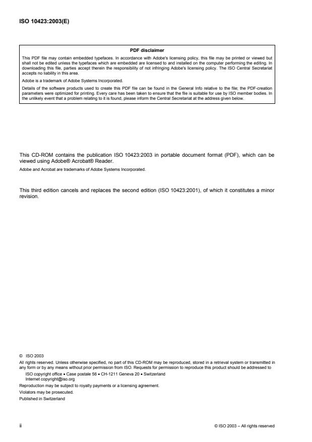This CD-ROM contains the publication ISO 10423:2003 in portable document format (PDF), which can be