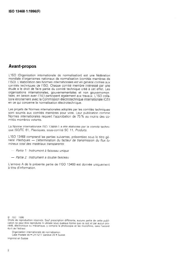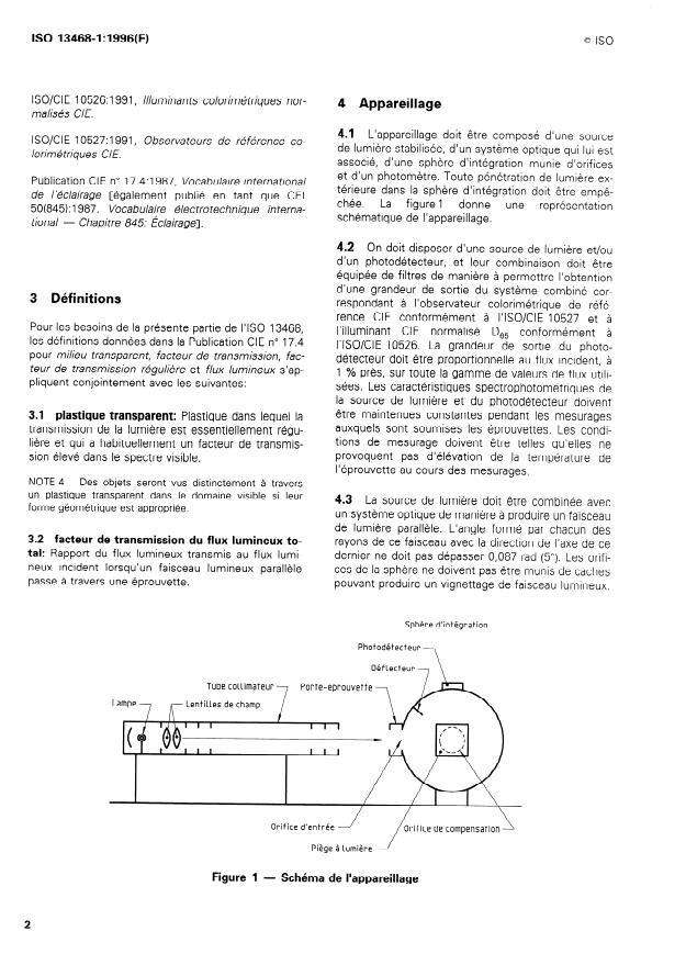 ISO 13468-1:1996 - Plastiques -- Détermination du facteur de transmission du flux lumineux total des matériaux transparents