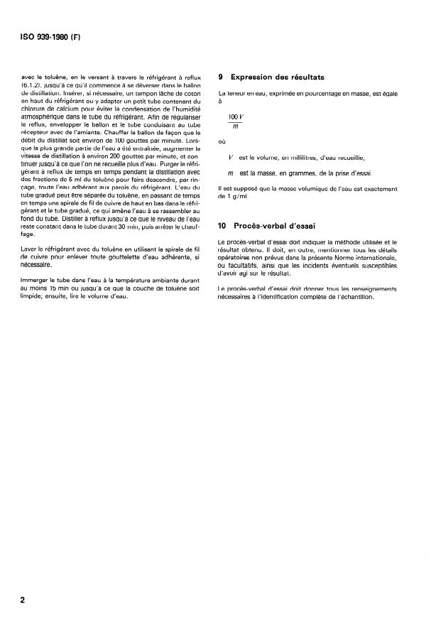 ISO 939:1980 - Épices -- Détermination de la teneur en eau -- Méthode par entraînement