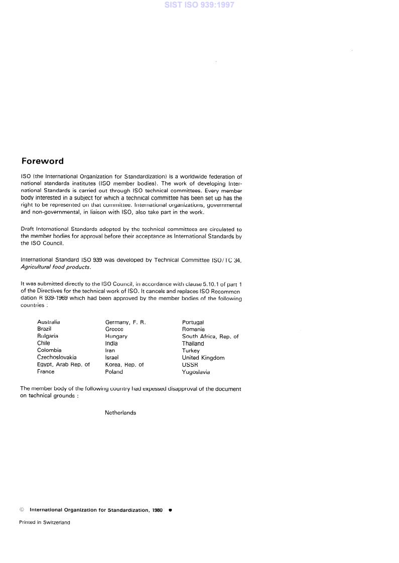 La Norme internationale ISO 939 a été élaborée par le comité technique ISO/TC 34,