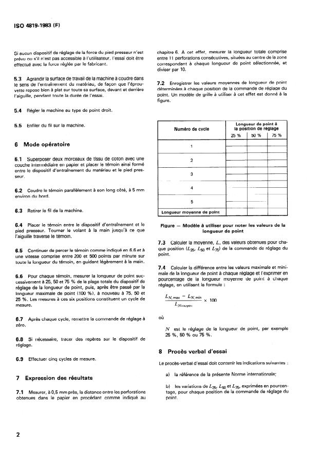 ISO 4819:1983 - Machines a coudre domestiques (ou de ménage) -- Détermination de la fiabilité du réglage de la longueur de point