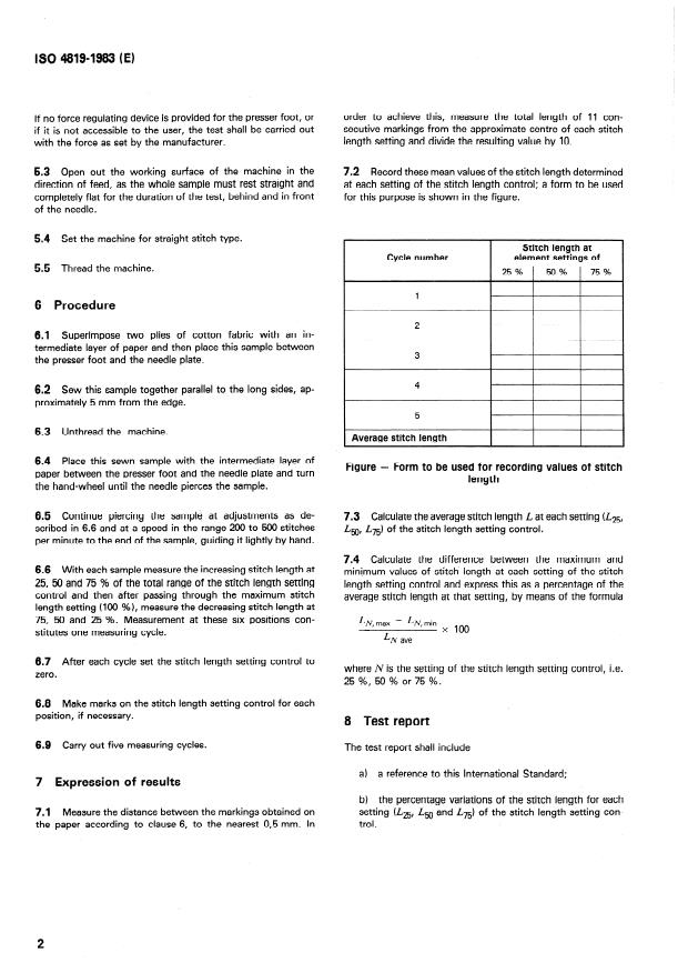 ISO 4819:1983 - Household sewing machines -- Determination of reproducibility of stitch length setting
