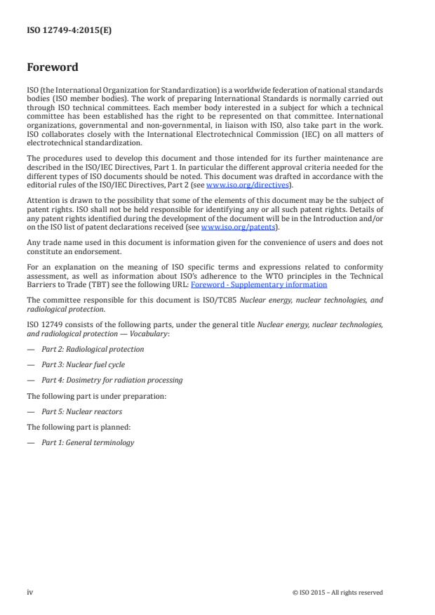 ISO 12749-4:2015 is a standard published by the International Organization for Standardization (ISO). Its full title is "Nuclear energy, nuclear technologies, and radiological protection — Vocabulary — Part 4: Dosimetry for radiation processing". This standard covers: ISO 12749-4:2015 lists unambiguous terms and definitions for concepts for dosimetry related to radiation processing using gamma radiation, X-radiation, or accelerated electrons. It is intended to facilitate communication and promote common understanding.
