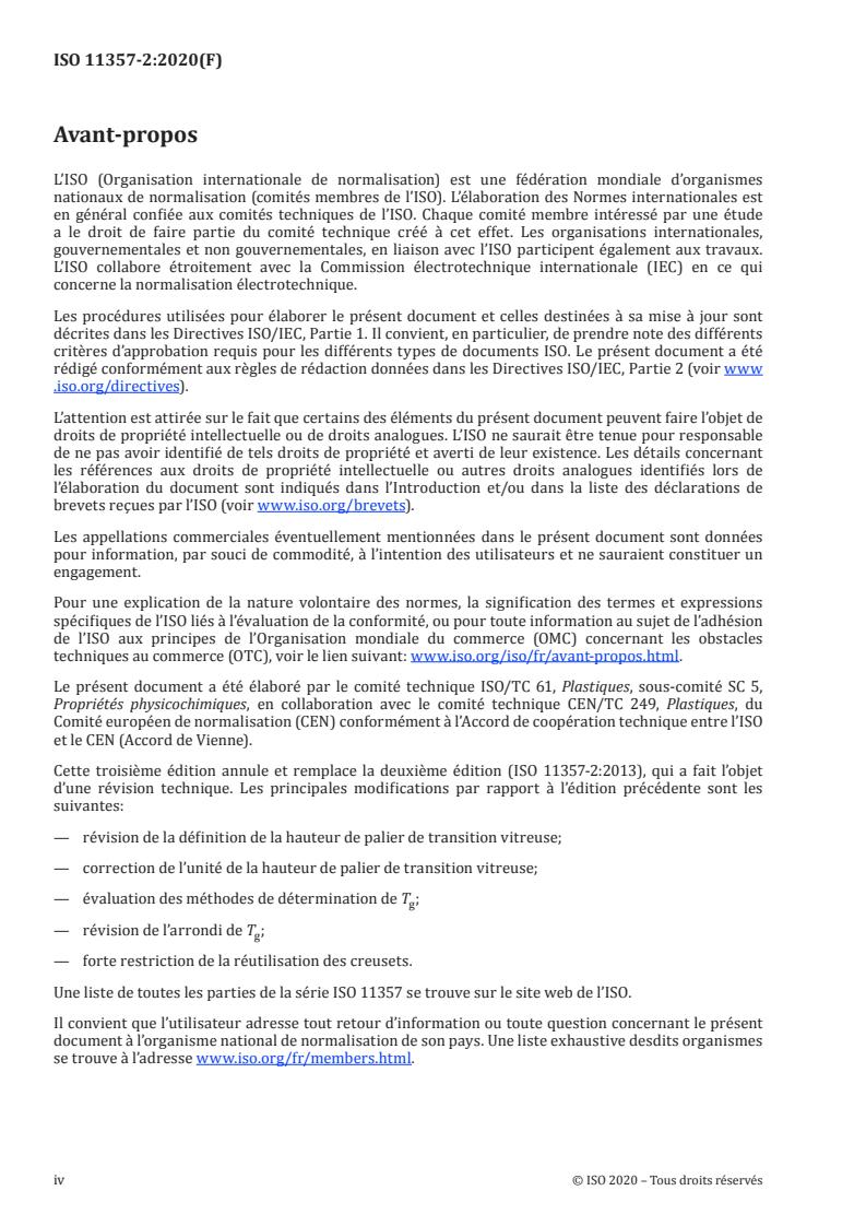 Cette troisième édition annule et remplace la deuxième édition (ISO 11357-2:2013), qui a fait l’objet