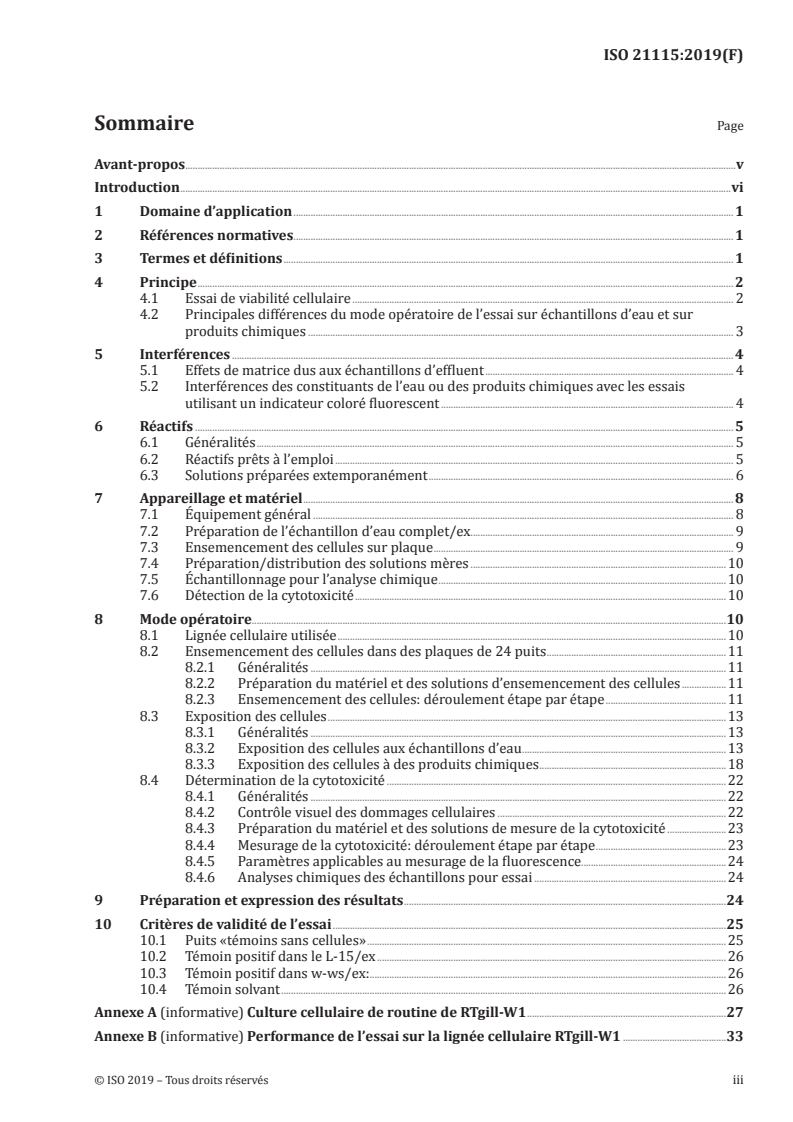 ISO 21115:2019 - Qualité de l'eau -- Détermination de la toxicité aiguë d'échantillons d'eau et de produits chimiques vis-a-vis de la lignée cellulaire de branchies de poissons (RTgill-W1)