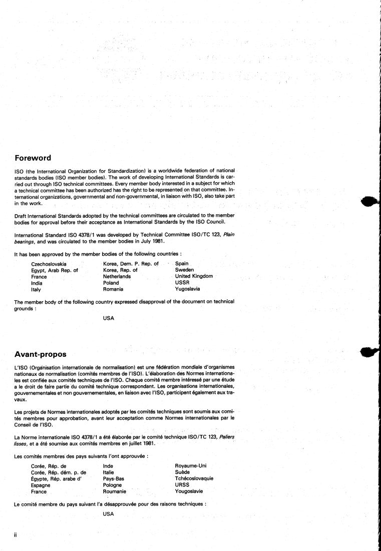 La Norme internationale IS0 4378/1 a été élaborée par le comité technique ISO/TC 123, Paliers
