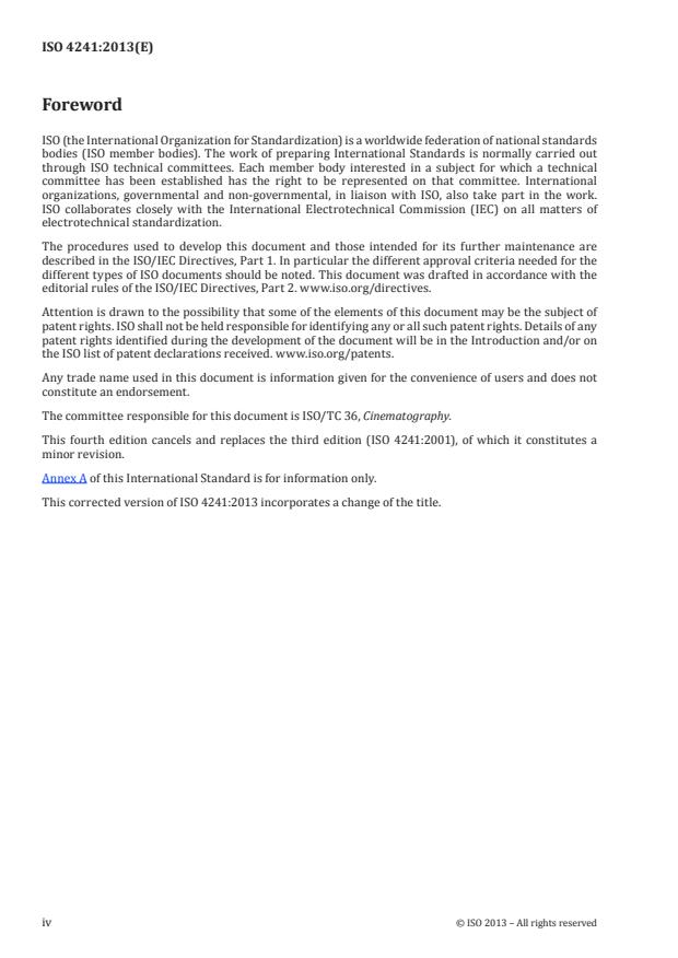 The committee responsible for this document is ISO/TC 36, Cinematography.