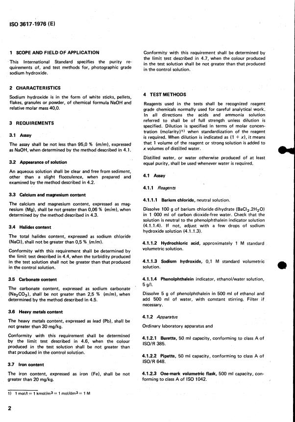 ISO 3617:1976 - Photographic grade sodium hydroxide -- Specification