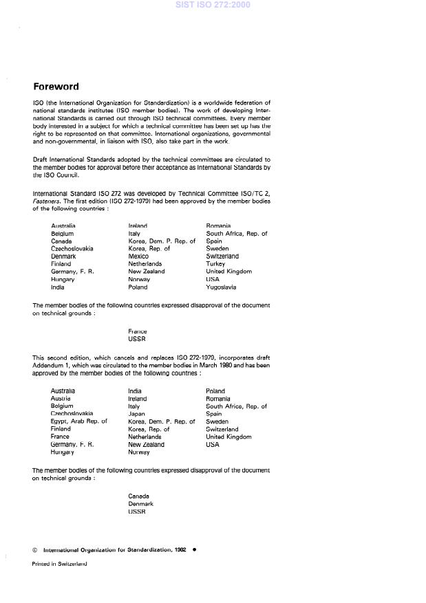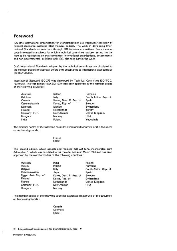 Fasteners. The first edition (IS0 272-1979) had been approved by the member bodies