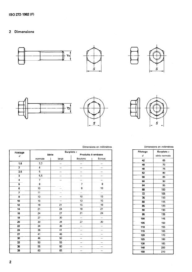 ISO 272:1982 - Éléments de fixation -- Produits hexagonaux -- Dimensions des surplats