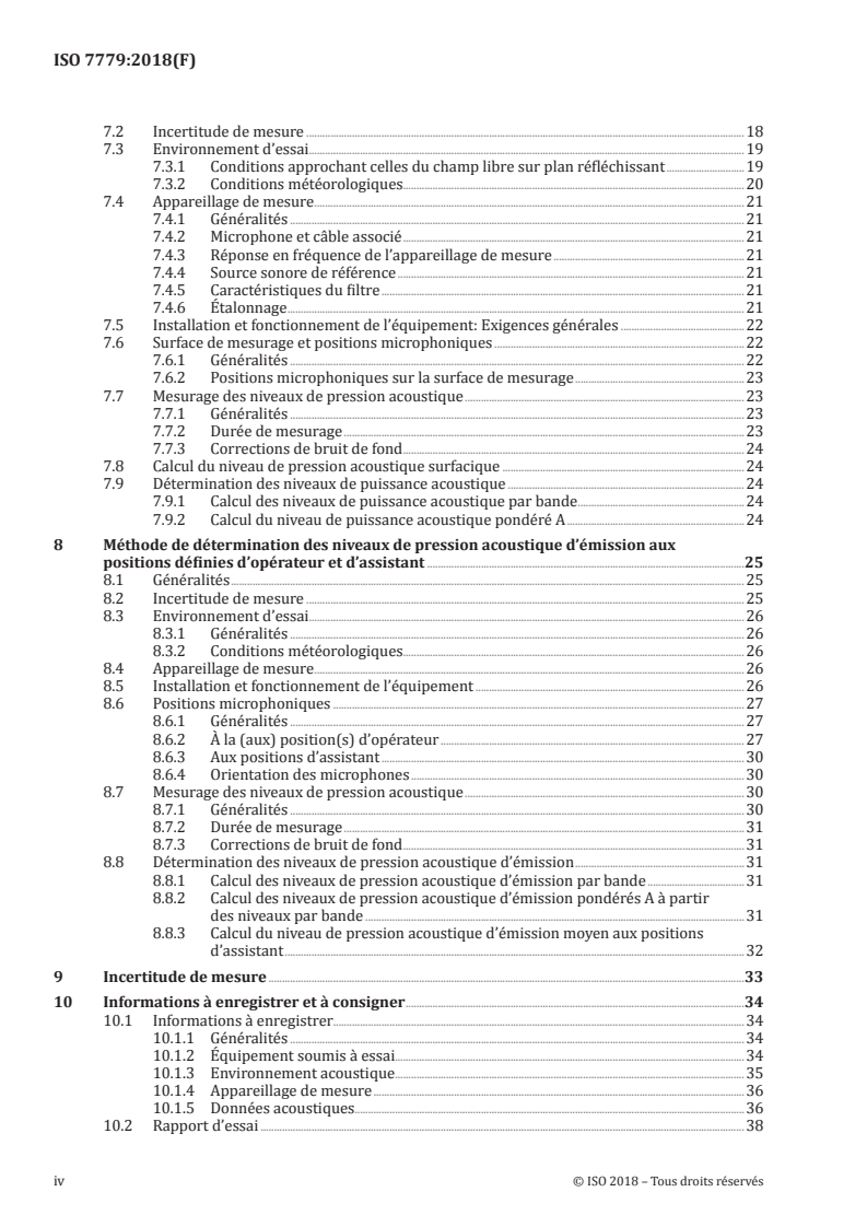 - Instrumentation and calibration: requirements for microphones, frequency response, reference sound sources and calibration procedures.