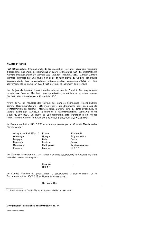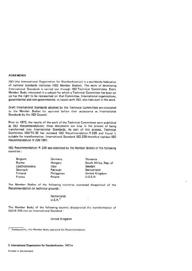 IS0 Recommendation R 229 was approved by the Member Bodies of the following