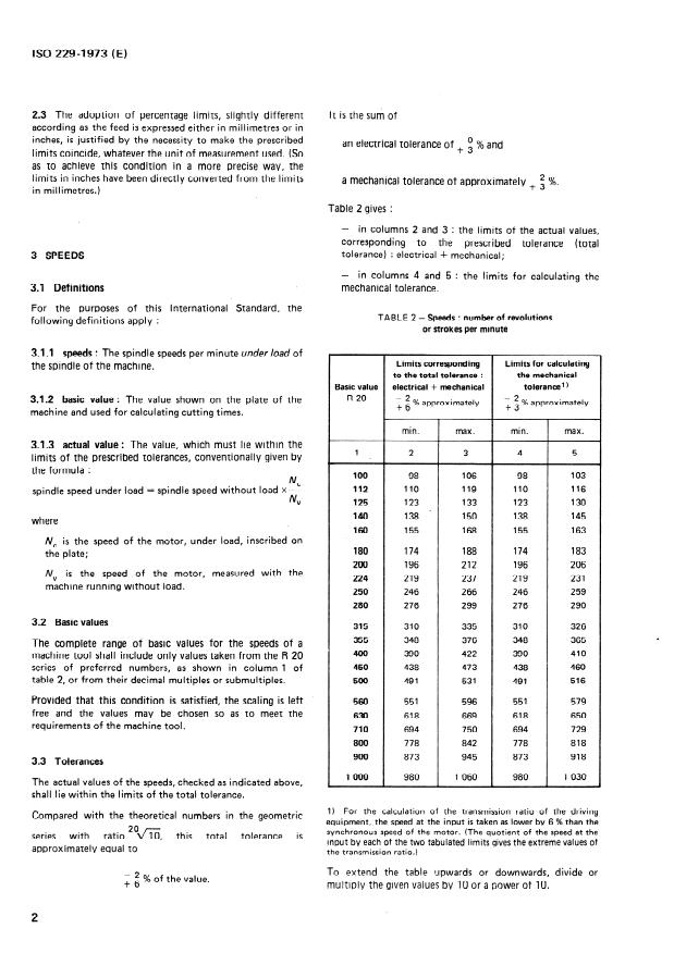 - ISO 229:1973 is applicable to machine tools directly driven by electric motors with fixed speed steps.