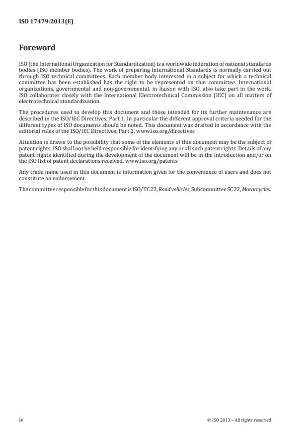 The committee responsible for this document is ISO/TC 22, Road vehicles, Subcommittee SC 22, Motorcycles.