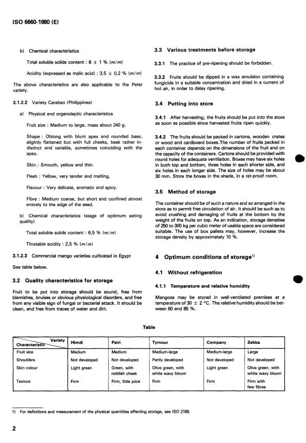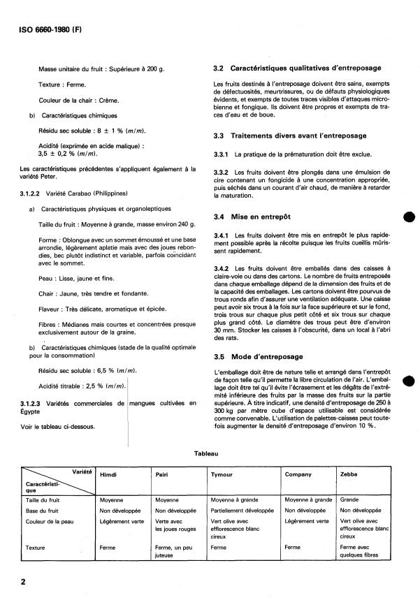 ISO 6660:1980 is a standard published by the International Organization for Standardization (ISO). Its full title is "Mangoes — Guide to storage". This standard covers: Mangoes — Guide to storage