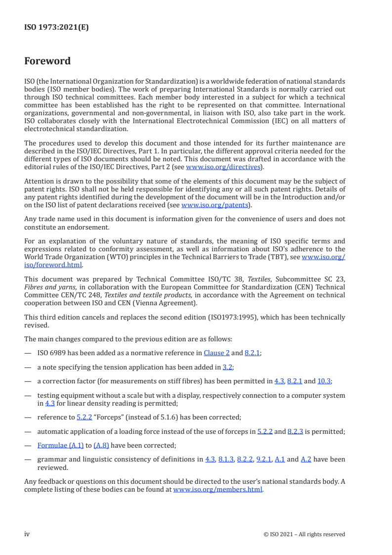 ISO 1973:2021 - Textile fibres -- Determination of linear density -- Gravimetric method and vibroscope method