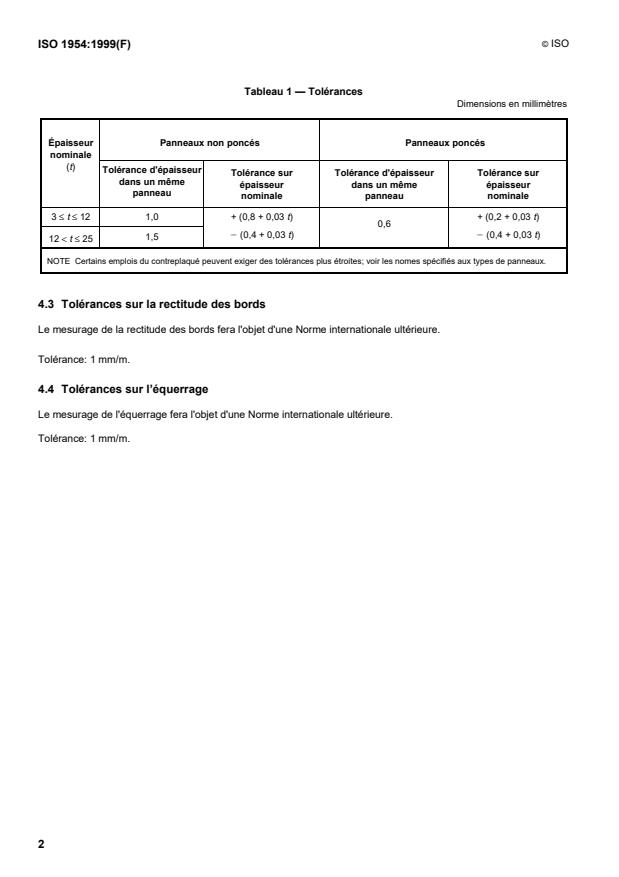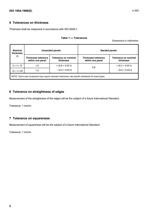 This International Standard specifies dimensional tolerances of plywood panels (length, width, thickness) and