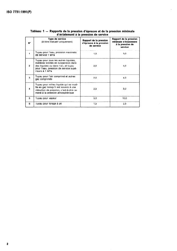 ISO 7751:1991 - Tuyaux et flexibles en caoutchouc et en plastique -- Rapports des pressions d'épreuve et d'éclatement a la pression maximale de service