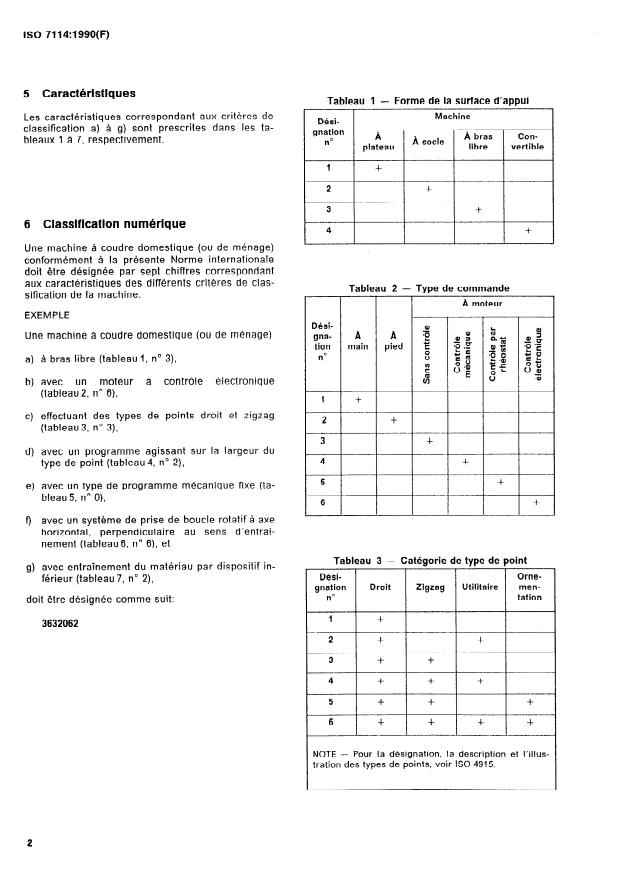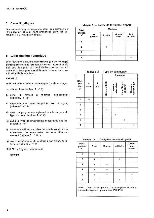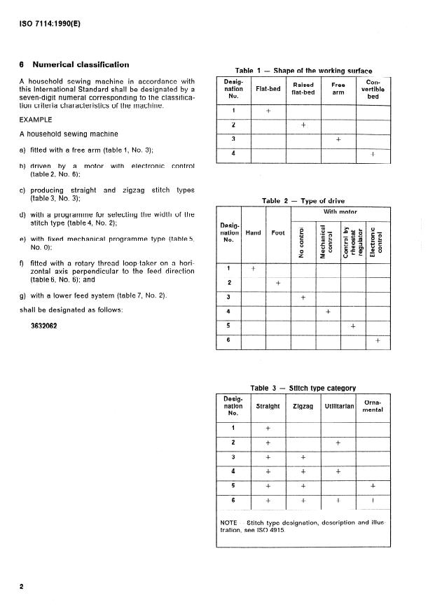 ISO 7114:1990 is a standard published by the International Organization for Standardization (ISO). Its full title is "Household sewing machines — Numerical classification". This standard covers: Establishes a numerical classification of sewing machines. Gives the classification criteria the characteristics of which are tabulated in tables 1 to 7 respectively.