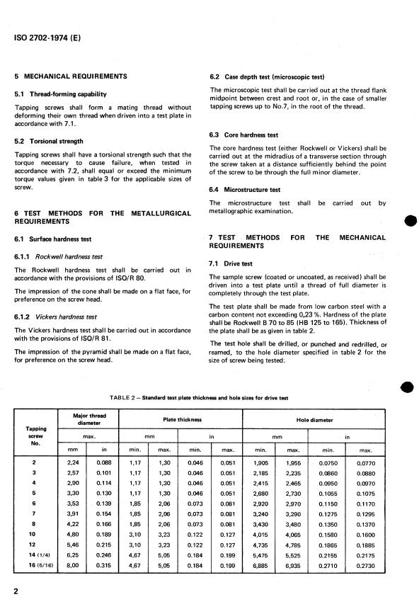 ISO 2702:1974 - Heat-treated steel tapping screws -- Mechanical properties