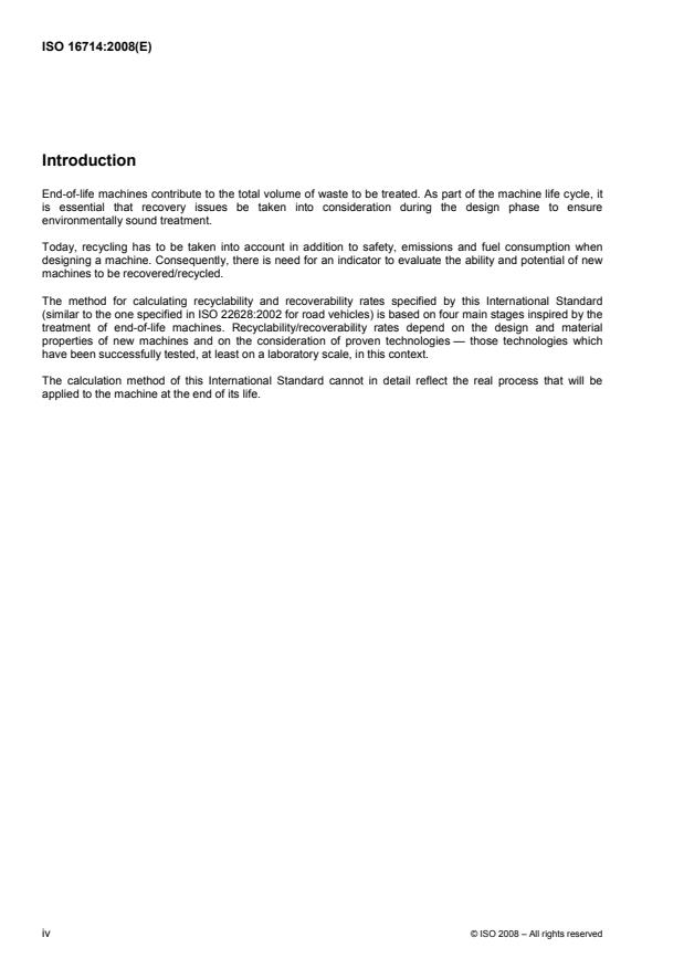 Keywords: ISO 16714, earth-moving machinery, recyclability, recoverability, calculation method, recyclability rate, recoverability rate, end-of-life, dismantlability, materials breakdown.