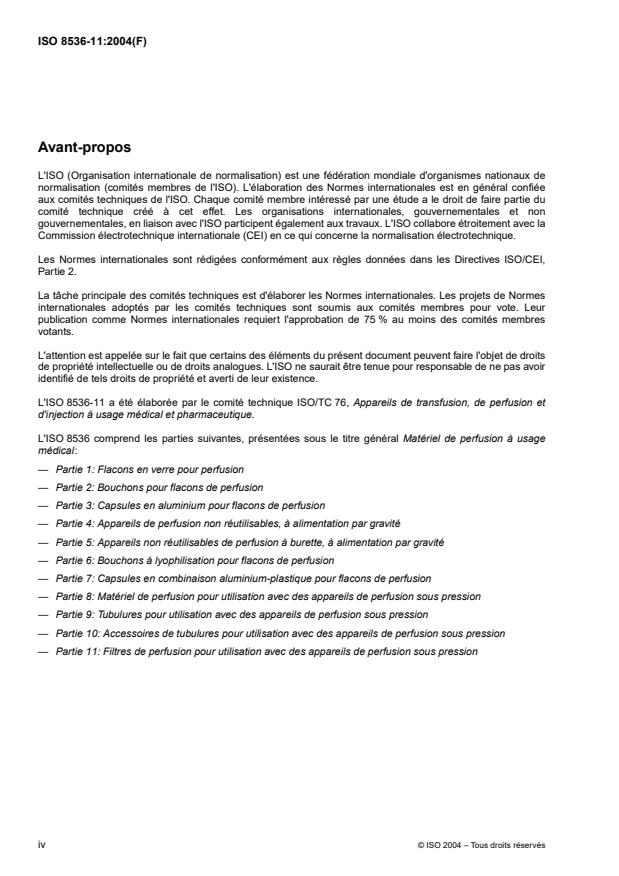 L'ISO 8536-11 a été élaborée par le comité technique ISO/TC 76, Appareils de transfusion, de perfusion et