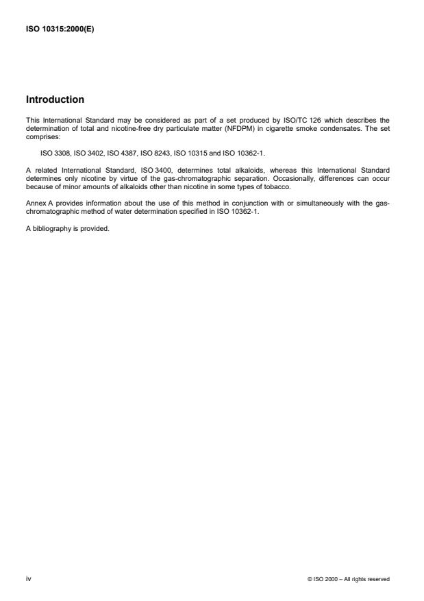 La Norme internationale ISO 10315 a été élaborée par le comité technique ISO/TC 126, Tabac et produits du