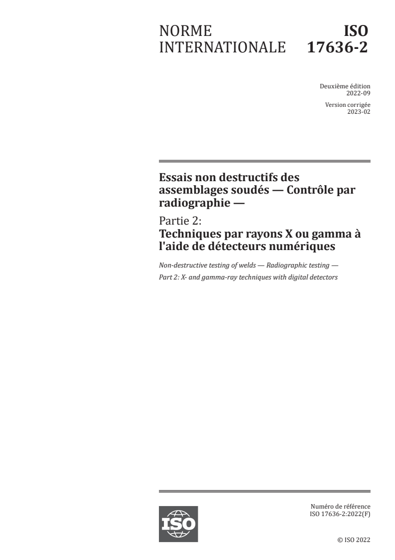 ISO 17636-2:2022 - Essais non destructifs des assemblages soudés — Contrôle par radiographie — Partie 2: Techniques par rayons X ou gamma à l'aide de détecteurs numériques Released:2/24/2023