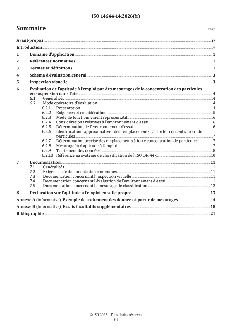 ISO 14644-14:2026 - Salles propres et environnements maîtrisés apparentés — Partie 14: Évaluation de l'aptitude à l'emploi des équipements par la détermination de la concentration de particules en suspension dans l'air