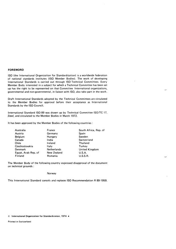 International Standard IS0 89 was drawn up by Technical Committee ISO/TC 17,