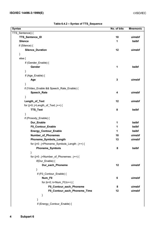 Table 6.4.2 – Syntax of TTS_Sequence