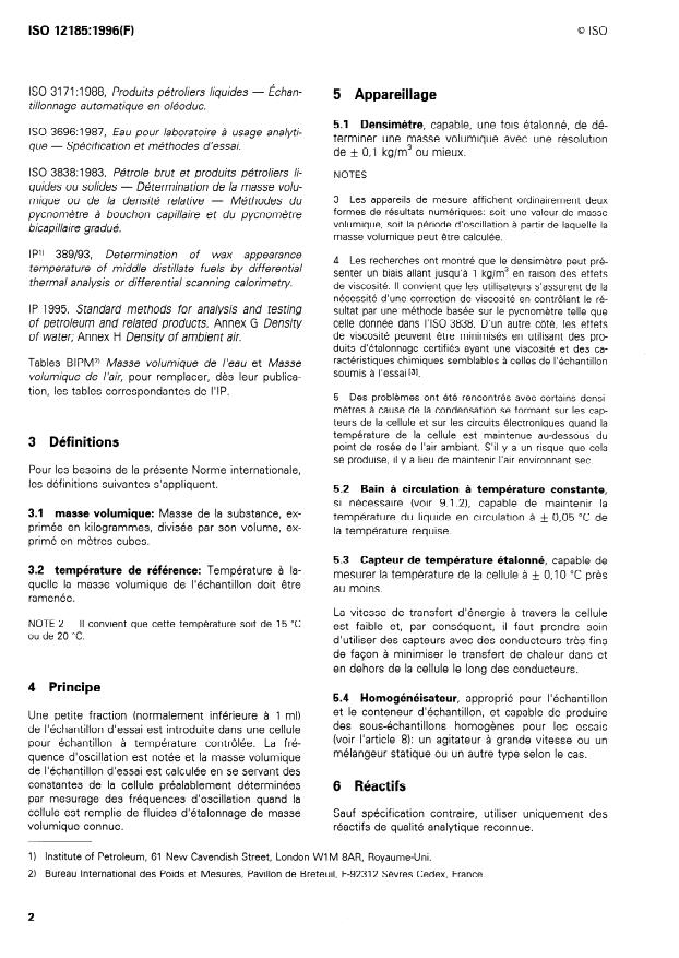 ISO 12185:1996 - Pétroles bruts et produits pétroliers -- Détermination de la masse volumique -- Méthode du tube en U oscillant