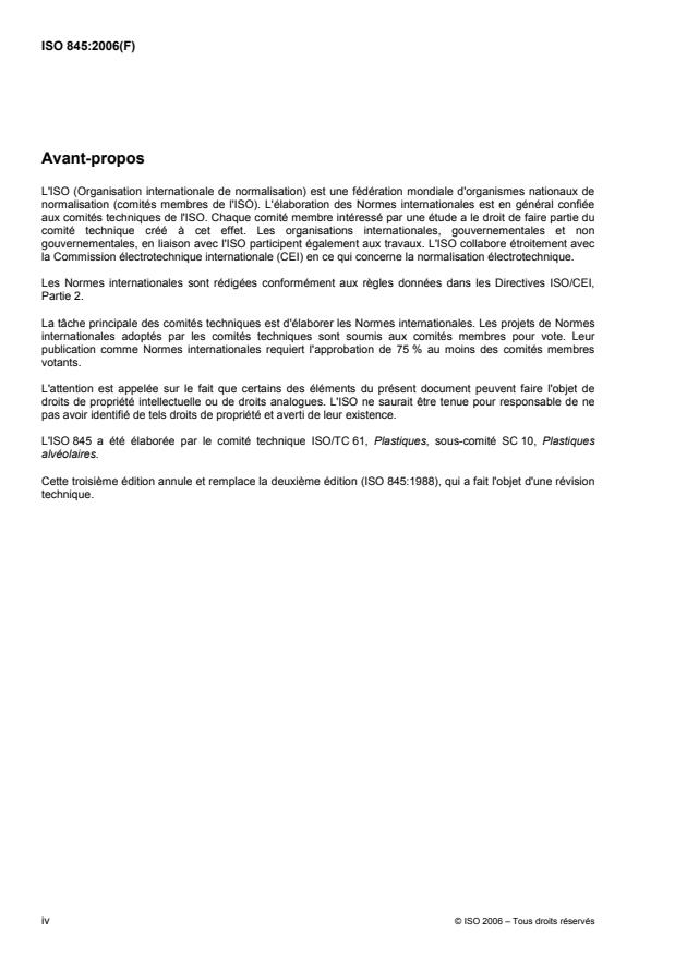 L'ISO 845 a été élaborée par le comité technique ISO/TC 61, Plastiques, sous-comité SC 10, Plastiques