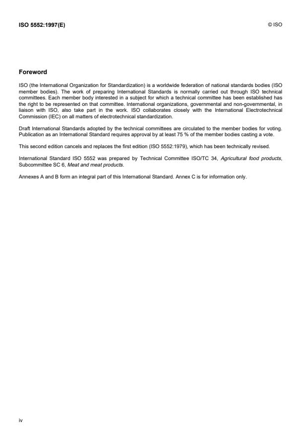 ISO 5552:1997 is a standard published by the International Organization for Standardization (ISO). Its full title is "Meat and meat products — Detection and enumeration of Enterobacteriaceae without resuscitation — MPN technique and colony-count technique". This standard covers: Meat and meat products — Detection and enumeration of Enterobacteriaceae without resuscitation — MPN technique and colony-count technique