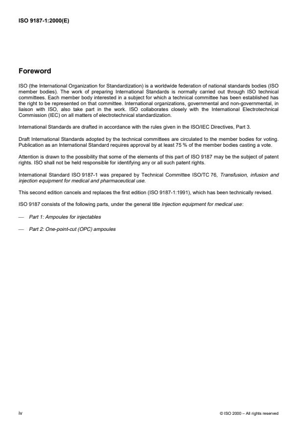 ISO 9187-1:2000 is a standard published by the International Organization for Standardization (ISO). Its full title is "Injection equipment for medical use — Part 1: Ampoules for injectables". This standard covers: Injection equipment for medical use — Part 1: Ampoules for injectables