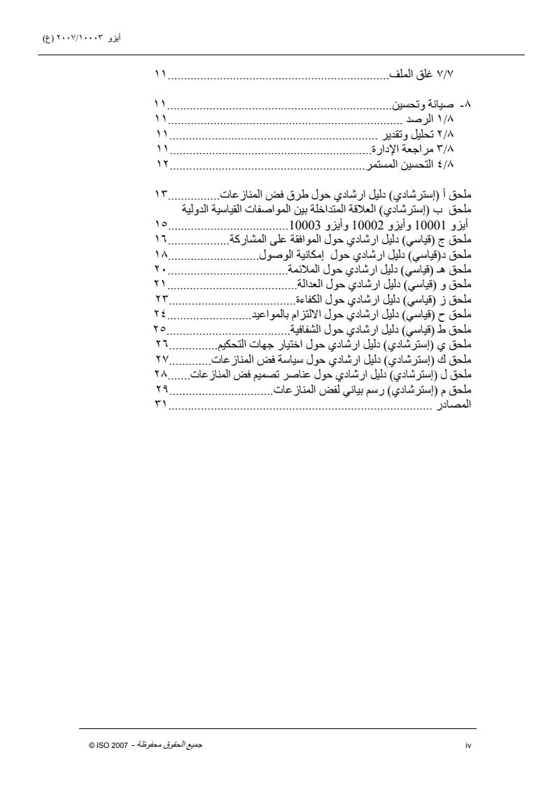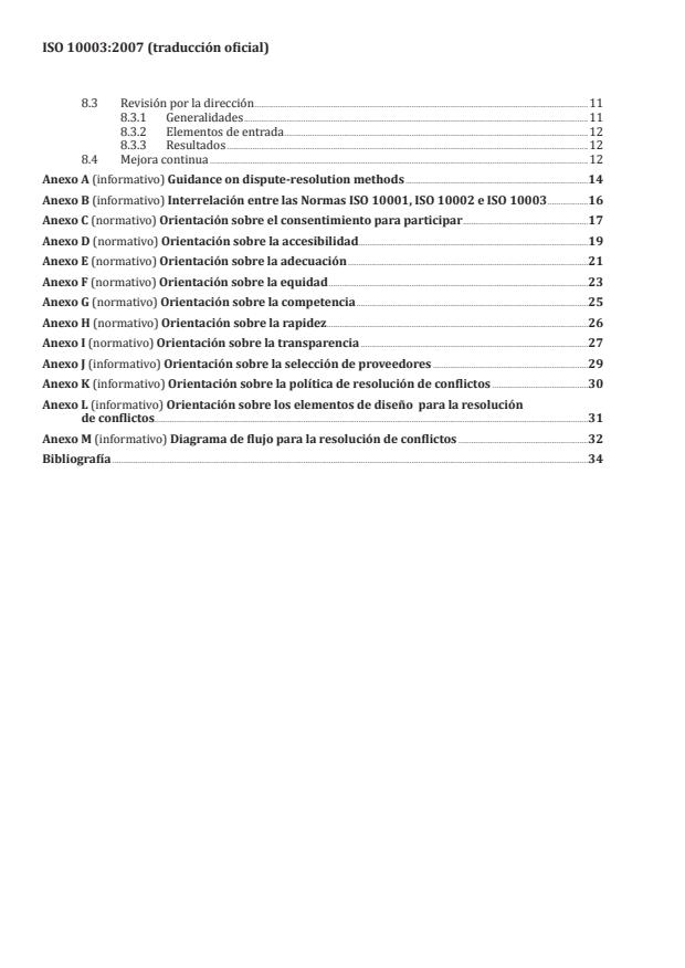 Standard SIST ISO 10003:2008 podaja organizacijam napotke za načrtovanje, oblikovanje, razvijanje, delovanje, vzdrževanje in izboljševanje uspešnih in učinkovitih procesov reševanja sporov za pritožbe, ki jih organizacija ni uspela rešiti (sama). Namenjen je organizacijam ne glede na vrsto, velikost ali njene proizvode in obravnava: