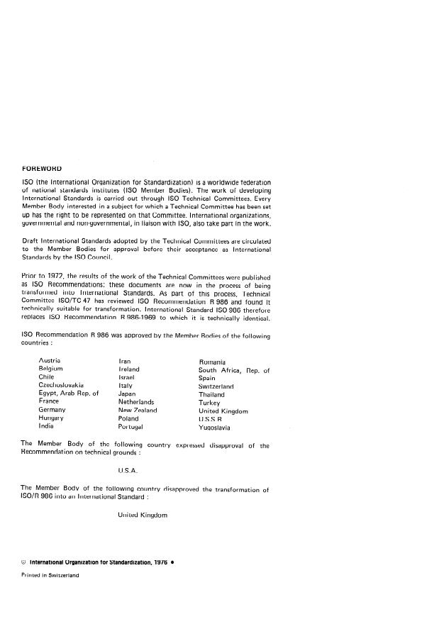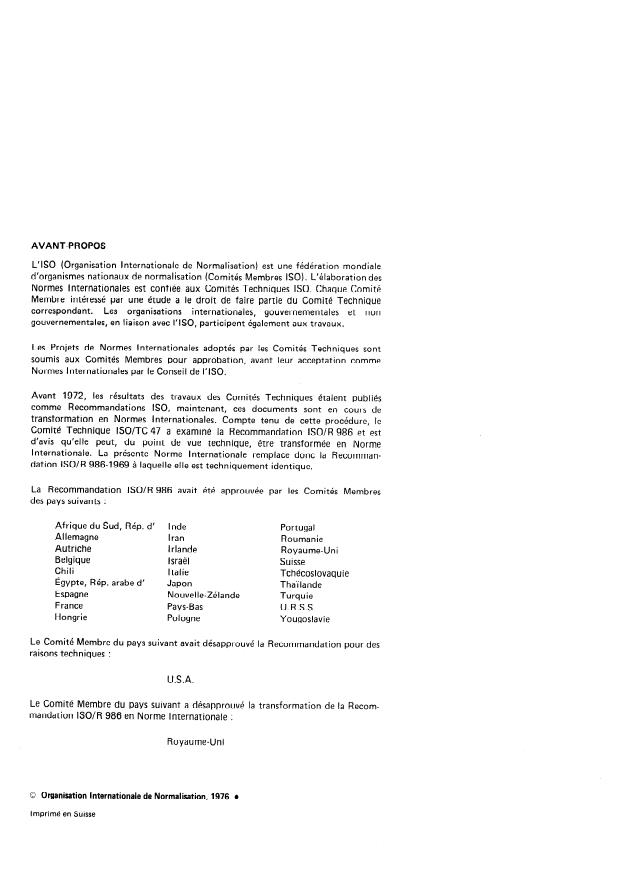 IS0 Recommendation R 986 was approved by the Member Bodies of the following