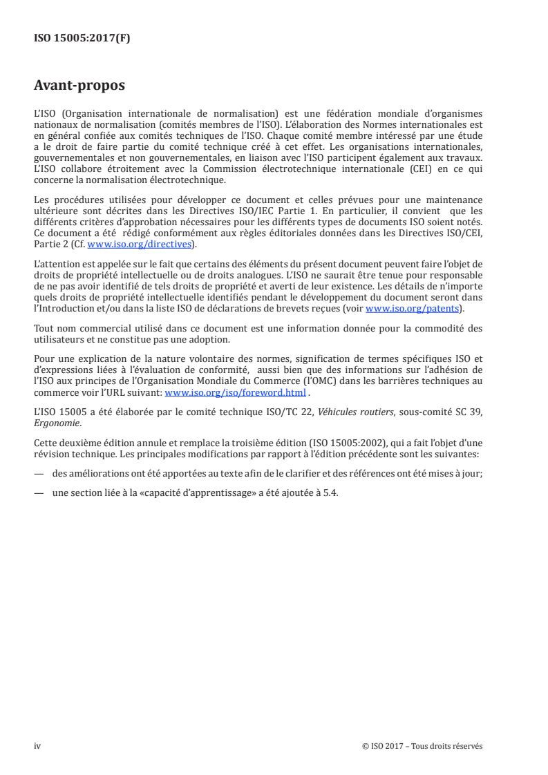 ISO 15005:2017 - Véhicules routiers — Aspects ergonomiques du transport et des systèmes de commande — Principes de gestion du dialogue et procédures de conformité Released:3/2/2017