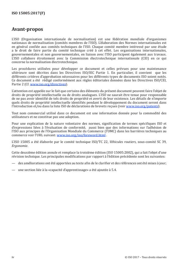 ISO 15005:2017 - Véhicules routiers -- Aspects ergonomiques du transport et des systemes de commande -- Principes de gestion du dialogue et procédures de conformité
