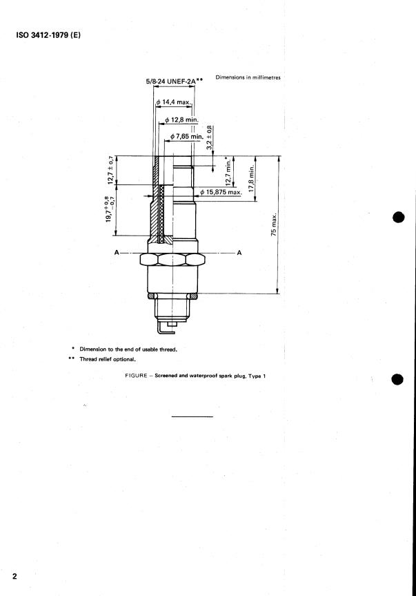 ISO 3412:1979 - Road vehicles — Screened and waterproof spark plug and its connexion — Type 1 Released:12/1/1979
