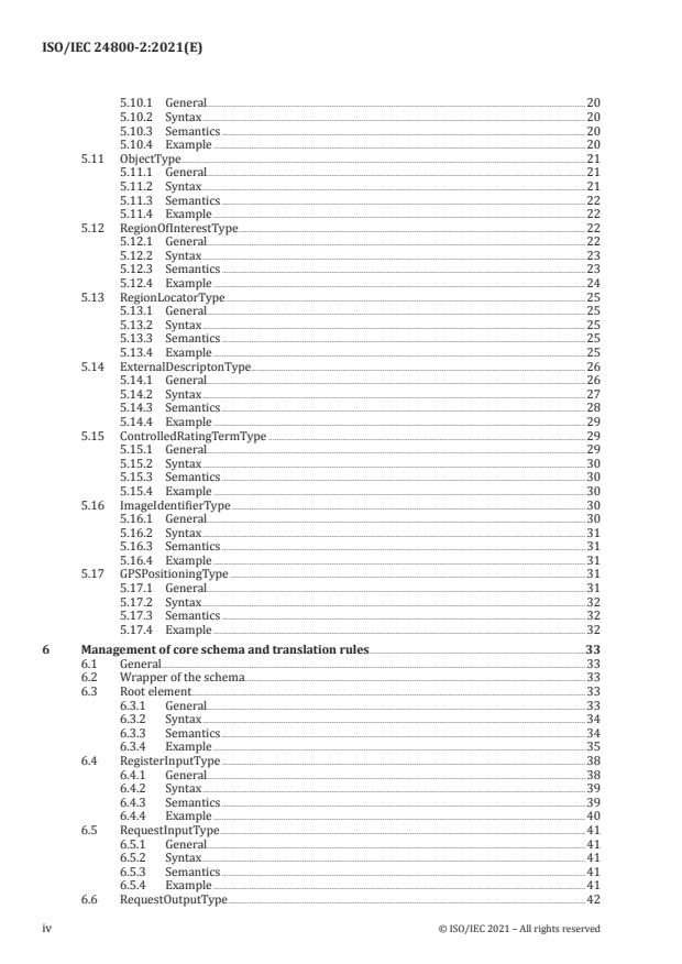 ISO/IEC 24800-2:2021 is the part of the JPSearch family that specifies registration, identification and management of schema and ontology for image metadata. The standard defines interfaces and general rules that enable disparate systems to manage image repositories interoperably. It provides the JPSearch Core Metadata Schema, rules for representing image metadata, and a mechanism for publishing machine-readable translations between proprietary metadata schemas and the JPSearch core. JPSearch is explicitly extensible, and this document describes how to extend structures and rules beyond the core schema.