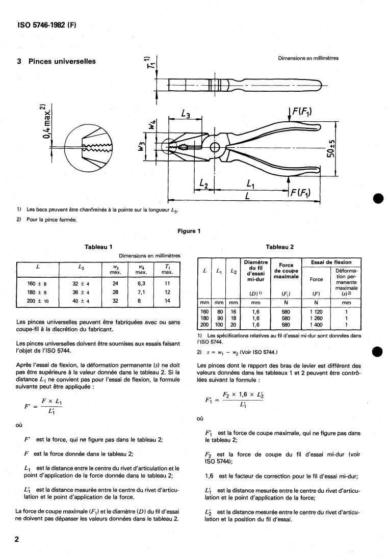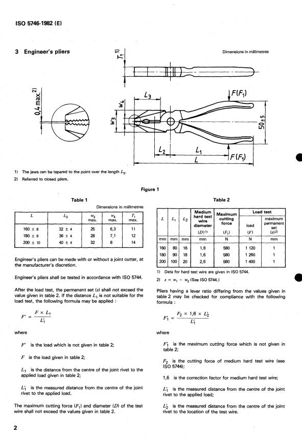 ISO 5746:1982 is a standard published by the International Organization for Standardization (ISO). Its full title is "Pliers and nippers — Engineer's and lineman's pliers — Dimensions". This standard covers: Pliers and nippers — Engineer's and lineman's pliers — Dimensions