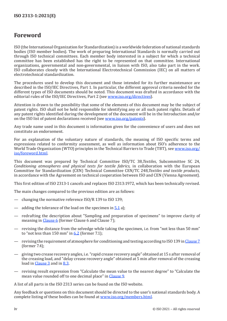 ISO 2313-1:2021 - Textiles -- Determination of the recovery from creasing of a folded specimen of fabric by measuring the angle of recovery