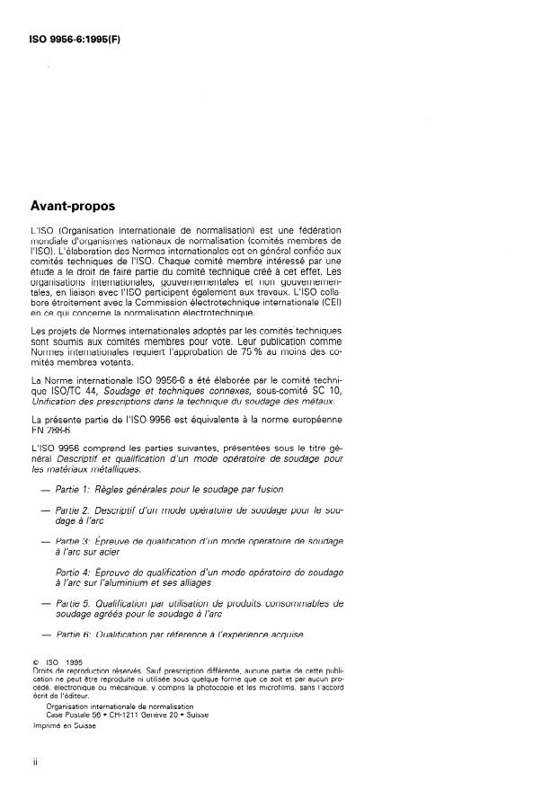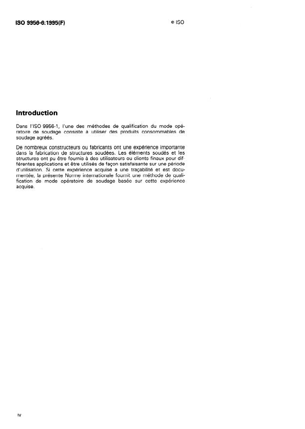 ISO 9956-6:1995 - Descriptif et qualification d'un mode opératoire de soudage pour les matériaux métalliques