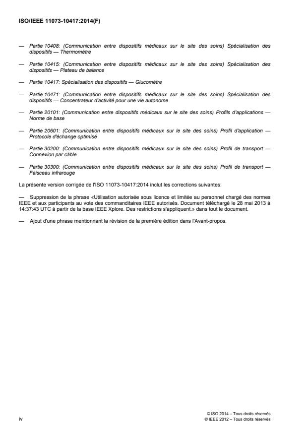 informations et des corrections et ne cop ie pas le contenu de l'ISO/IEEE 11073-20601:2010. Dans l'ensemble de la