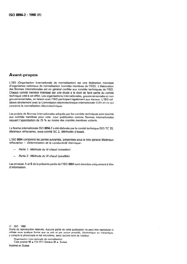 ISO 8894-2:1990 - Matériaux réfractaires -- Détermination de la conductivité thermique
