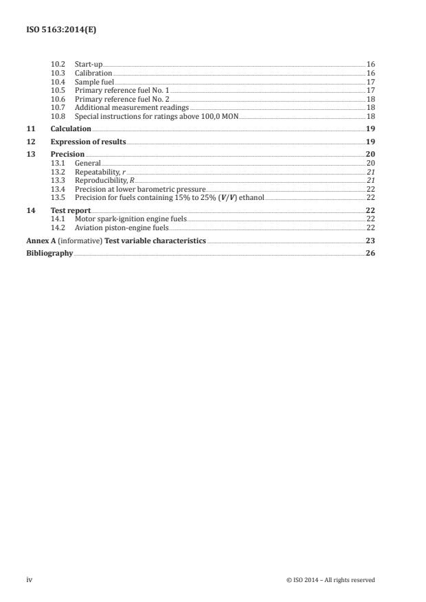 - Measurement & calculation: Procedures for recording knockmeter readings, calculating MON, and expressing results; includes precision data (repeatability and reproducibility) and handling of special cases (e.g., ratings above 100 MON).