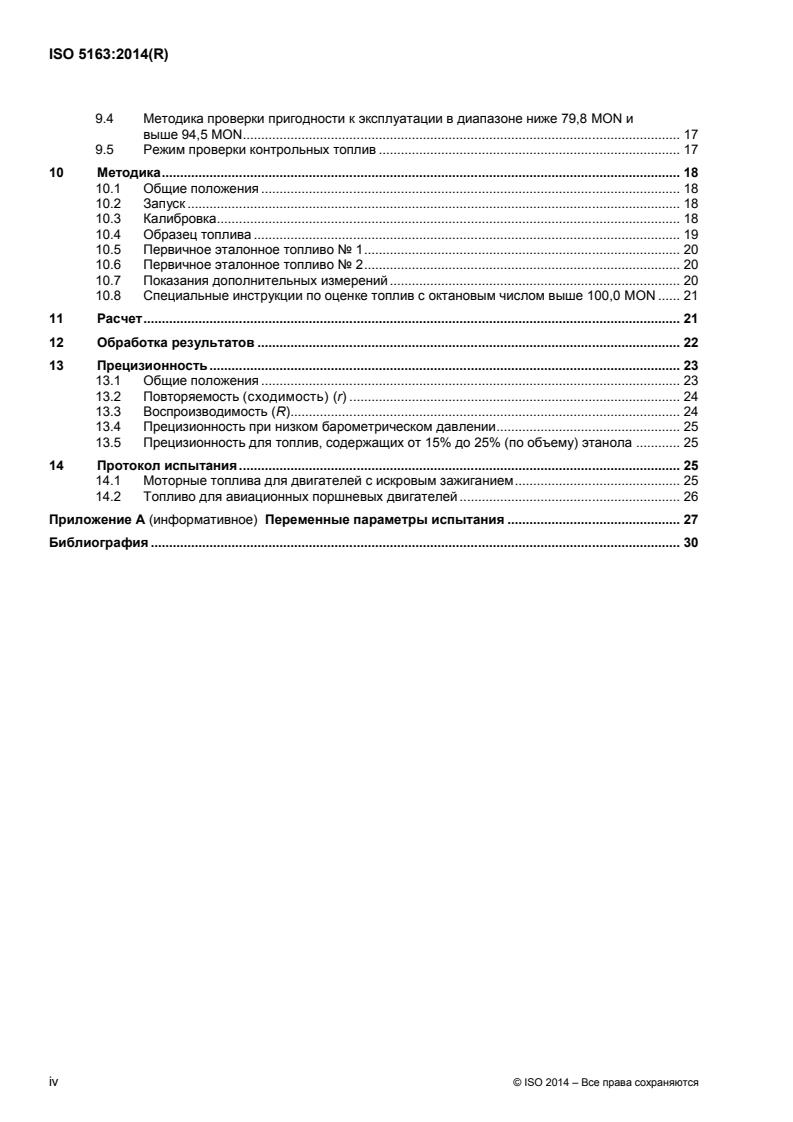 L'ISO 5163:2014 spécifie une méthode de cotation des carburants liquides pour moteurs à allumage commandé, exprimée sur une échelle arbitraire d'indice d'octane, en utilisant un moteur monocylindre à quatre temps, à taux de compression variable, à carburateur, le moteur CFR fonctionnant à vitesse constante. L'indice d'octane moteur (MON) constitue une mesure des caractéristiques antidétonantes des carburants dans les moteurs pour automobiles dans des conditions de fonctionnement sévères. L'indice d'octane moteur constitue une mesure des caractéristiques antidétonantes des essences aviation dans les moteurs d'avion à pistons, en utilisant une équation pour le corréler à l'indice d'octane méthode aviation, ou indice de performance (indice aviation mélange pauvre). L'ISO 5163:2014 s'applique dans une gamme d'indices d'octane allant de 0 MON à 120 MON, mais les essais courants se font entre 40 MON et 120 MON. La gamme de mesure classique pour les carburants moteurs va de 80 MON à 90 MON, tandis que pour les essences aviation elle va de 98 MON à 102 MON.