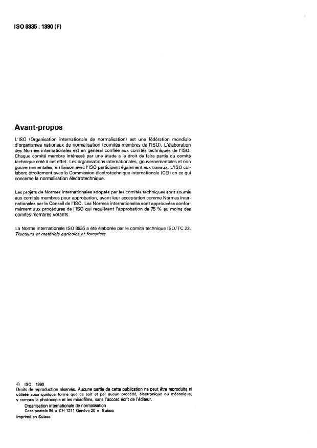 ISO 8935:1990 is a standard published by the International Organization for Standardization (ISO). Its full title is "Tractors for agriculture and forestry — Mountings and apertures for external equipment controls". This standard covers: Specifies requirements to allow mounting of additional controls and instrumentation used for remote operation of supplementary machinery and equipment on tractors, and provision of an electrical power-point adjacent to the mounting; it also lays down requirements for an apeture through which the control cable or hose enters the tractor cab. Some figures illustrate the meaning of the description.
