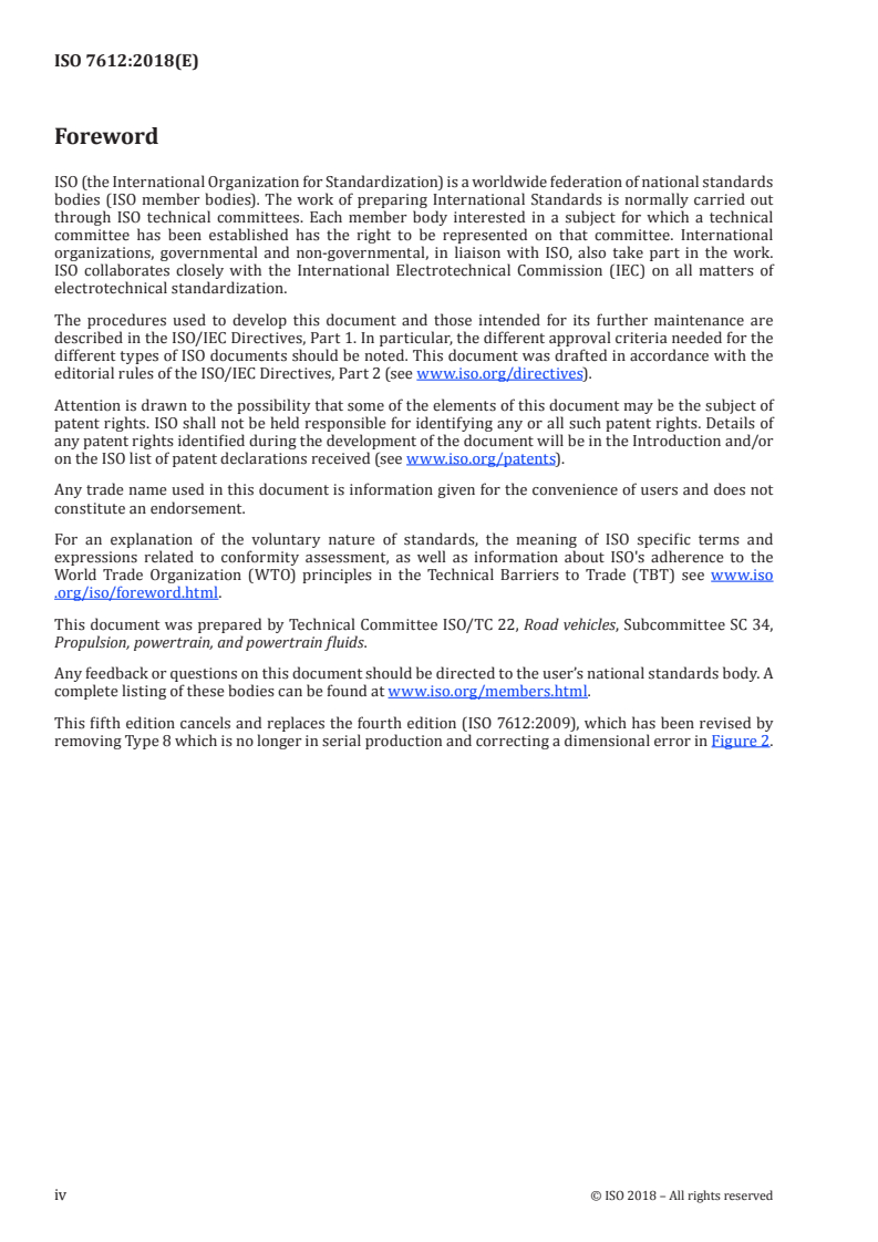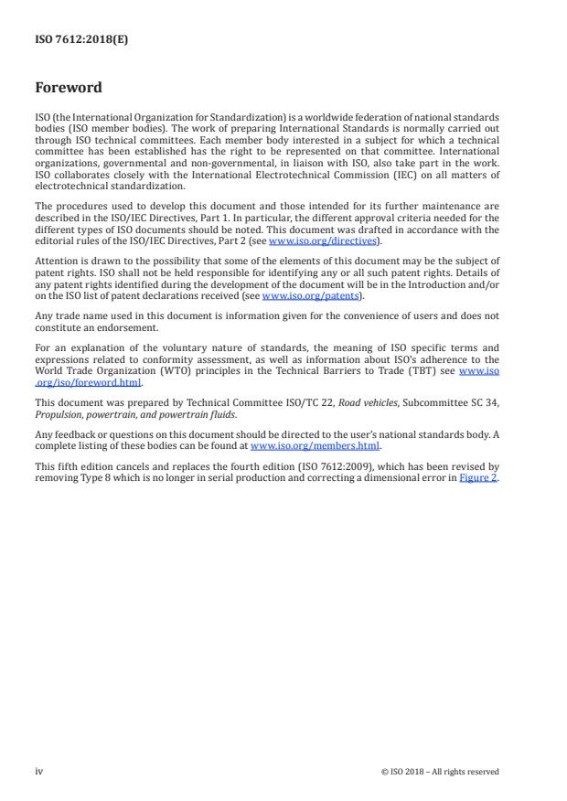 - Edition notes: The 2018 edition cancels ISO 7612:2009, removes a type no longer in serial production, and corrects a previously reported dimensional error.